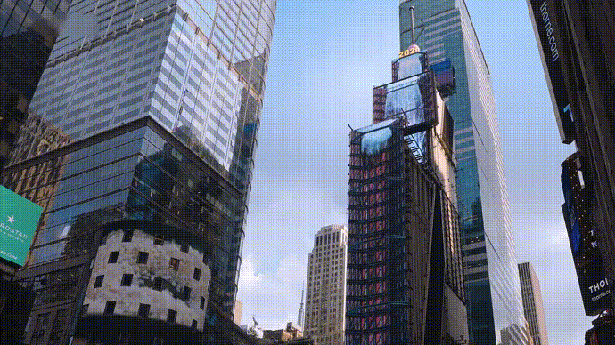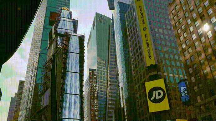 公共媒体艺术作品《Waterfall-NYC》在前不久于纽约时代广场One Times Square外立面大屏幕上展出。