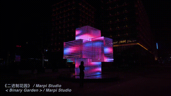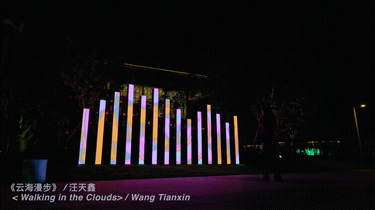白天作为空间雕塑反射周围的环境并通过镜面与行人互动;夜幕降临,塔身LED视觉系统启动,逐渐演变为一个炫丽的人工智能数字塔,呈现着当代媒体艺术家们基于人工智能技术所创造的全新视觉语言。